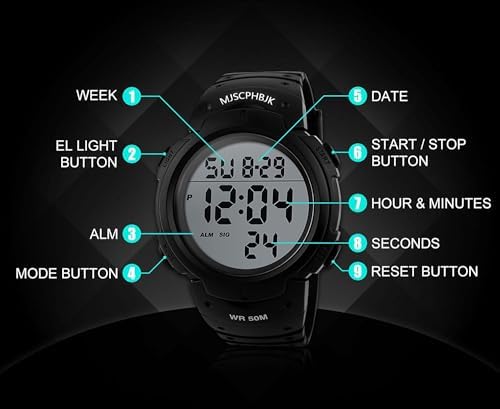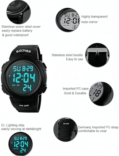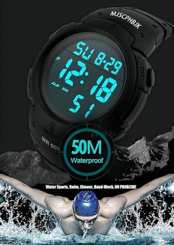 MJSCPHBJK Mens Digital Sports Watch, Waterproof LED Screen Large Face Military Watches for Men