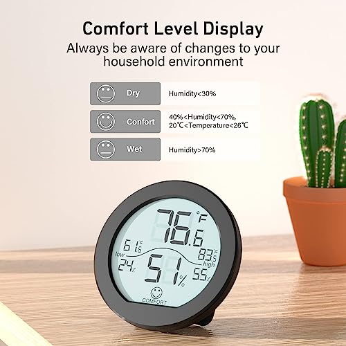 SECRUI Indoor Digital Hygrometer 3 Pack Room Thermometer and Humidity Gauge LCD with Max and Min Records (Black)
