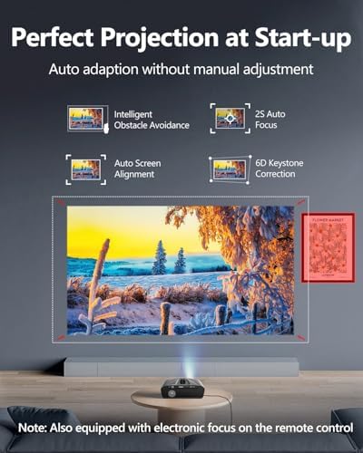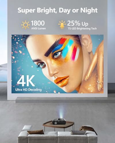 4K Projector Auto Focus HDR WiFi 6, Smart Daylight Projector 4K High Lumen 1800 ANSI LED 1080P Ultra HD Ceiling Home Theater Karaoke Movie Gaming Indoor Outdoor with Bluetooth HDMI USB Ethernet Apps