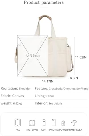 Eagerrich Canvas Crossbody Tote Bag with Multi Pockets for Women Work Large Handbags Shoulder Bag Messenger Bag Travel Purse