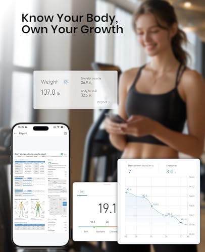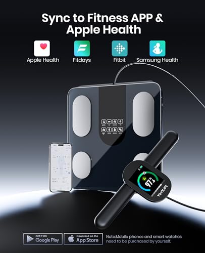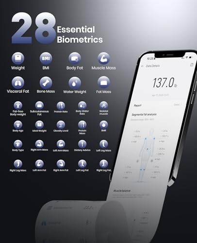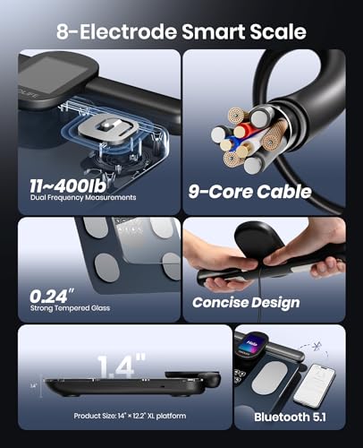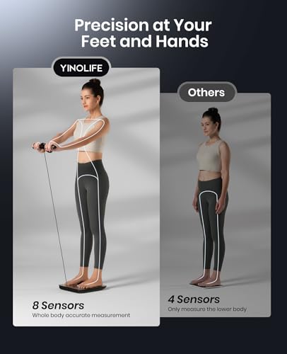 YINOLIFE Smart Scale with BMI, Body Fat, Muscle Mass, 8 Electrode Weight Scale with 28 Full Body Composition, Scale for Body Weight with Retractable Handle, Large Color Display, 14", Rechargeable