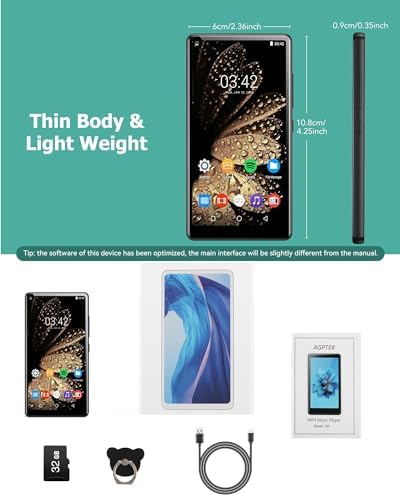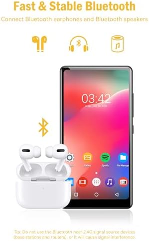 AGPTEK 40GB MP3 Player with Bluetooth and WiFi, 4'' Full Touch Screen MP4 Player with Spotify, Android Online Music Player with Speaker, FM Radio - Model: T05(Black)