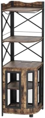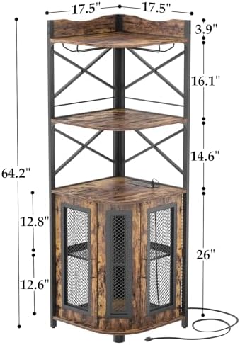 Aheaplus Corner Bar Cabinet with Power Outlet, Industrial Wine Cabinet with LED Strip and Glass Holder, 5-Tiers Liquor Cabinet Bar Unit for Home, Corner Display Cabinet for Small Space, Rustic Brown