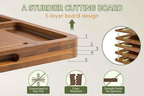 THETCHRY Cutting Board for Kitchen,Wood Thickened Non-Slip Cutting Board with Juice Groove & Handle, Bamboo Charcuterie Chopping Board for Meat, Perfect Size for Prep & Serving,16.93" x12.