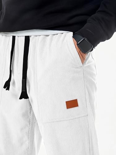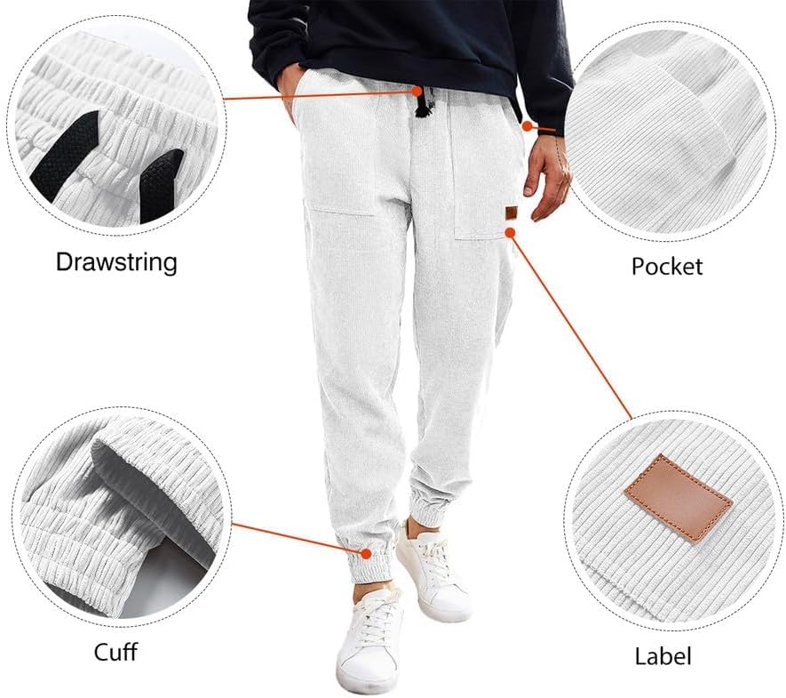JMIERR Men's Corduroy Running Pants Casual Work Pants Drawstring Elastic Waist Loose Cone Sports Pants with Pocket