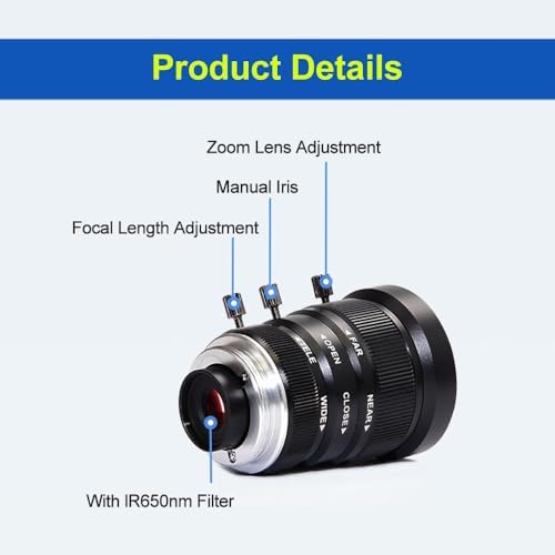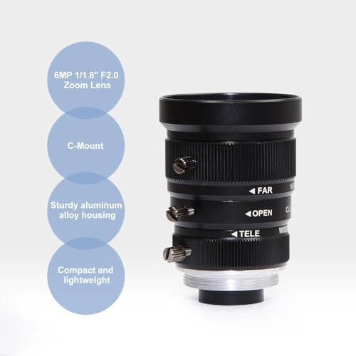 MOKOSE 5-12mm CCTV Camera Lens 6MP Pixels 1\/1.8" Zoom C-Mount Industrial Camera Manual Lens Low Distortion(with lR650nm Filter)