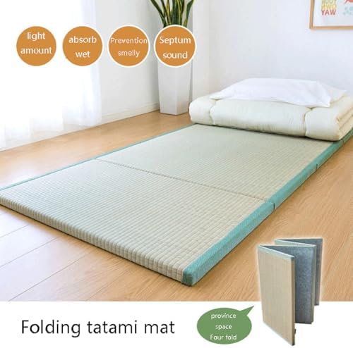 Dymhaoby Japanese Traditional Tatami Mattress, Igusa (Rush Grass) Tatami Mat, Foldable Floor Mattress, Japanese Floor Mattress,Japanese Futon Bed,Meditation Mats for Floor,Summer Sleeping Mat