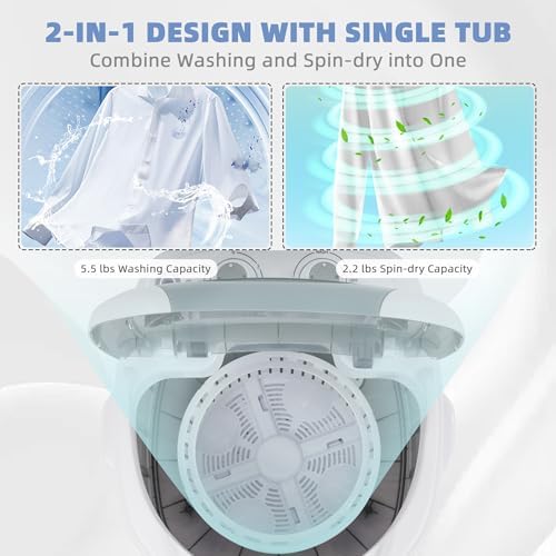 Elevon Portable Washing Machine 5.5 lbs Capacity Rotary Timer Controller, Compact Laundry for Home, Apartment, RV, White\/Gray