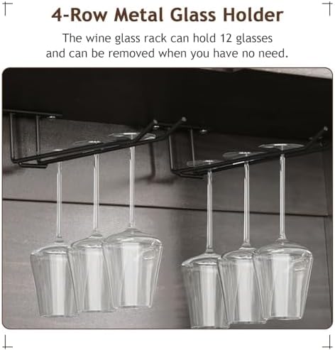 4ever2buy 72" Farmhouse Coffee Bar Cabinet with 2 Glass Doors & 9 Wine Racks, Tall Hutch Cabinet with Storage, Wine Bar with 4 Row Metal Glass Holder, Dark Oak