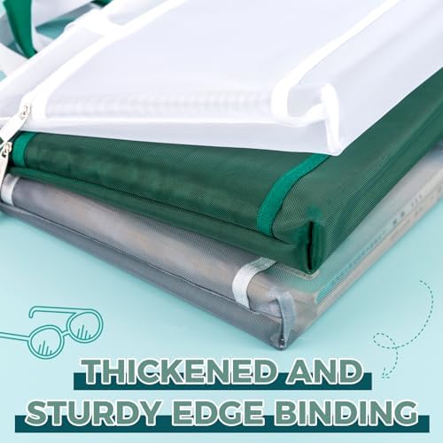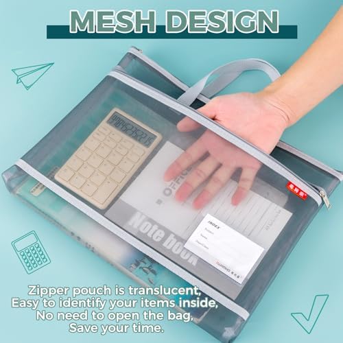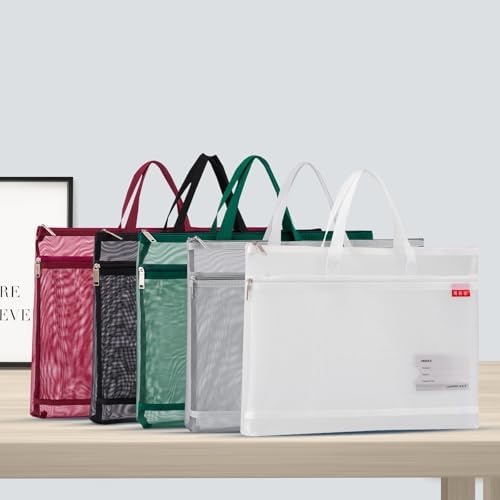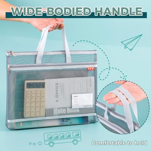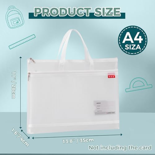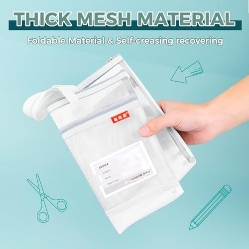 Pendancy Mesh Zipper Pouch A4 Size, Large Double Pocket Lightweight Nylon Transparent File Bag with Handle, 11x13.8 in Foldable Document Storage for Puzzle Project\/Cross Stitch\/Travel\/Office (White