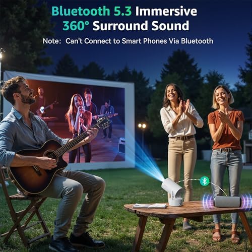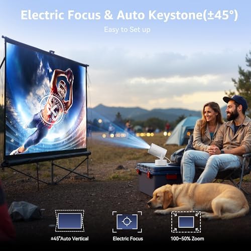 Polocsh Mini Projector, Rechargeable Portable Outdoor Smart Projector with 4K Support, Auto Keystone, Android 11 Small Projector with WiFi and Bluetooth, Electric Focus Home Theater for iphone