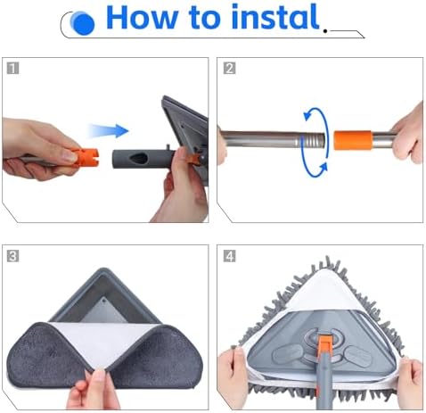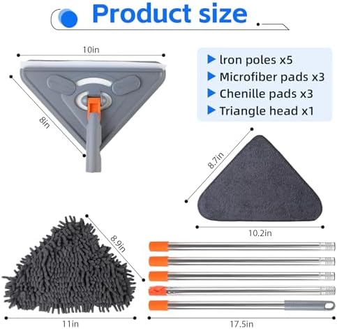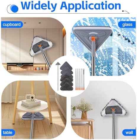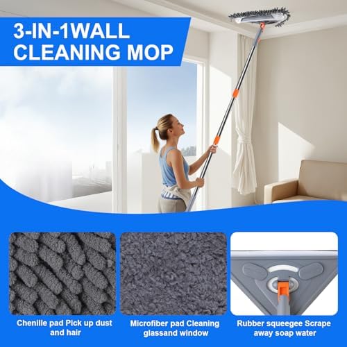 ZYHZYHA Wall Mop with 80 Inches Long Handle, Wall Cleaner Mop Tool for Window\/Walls\/Ceiling Fans\/Dust\/Baseboard\/Floors Clean, 360° Ceilings Cleaner Tool Duster with Squeegee 6 Replacement Pads