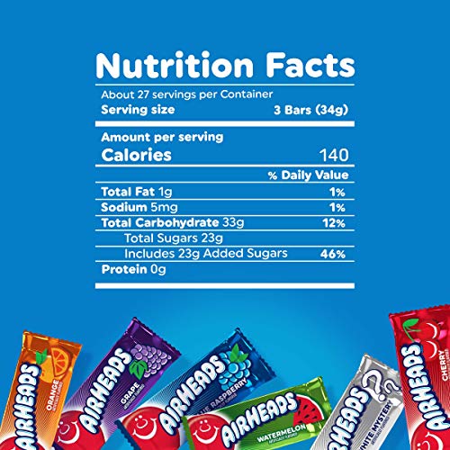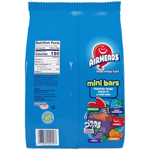 Airheads Candy Mini Bars, Chewy Fun Taffy Candy, Assorted Fruit Flavors, Back to School for Kids, Non Melting, Party, 2 Pound Bag (Pack of 4)
