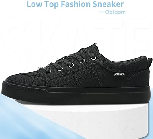 Obtaom Women's White Play Fashion Sneakers Cute Lace up Canvas Shoes Low Top Washed Canvas Flat for Lady