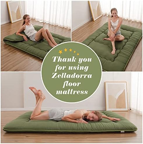 Zelladorra Japanese Floor Mattress, Futon Mattress with Portable Storage Bag and Washable Cover, Roll Up Thick Tatami Mat Suitable for Camping, Guest Room, Green, Twin