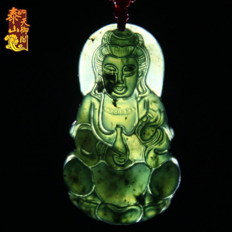 Jefuzh Natural Mount Taishan Jade Pendant Jasper Avalokitesvara Laughing Buddha Maitreya Buddha Statue Maitreya Buddha Statue Necklace Pendant for Men and Women Free Hanging Rope 9735