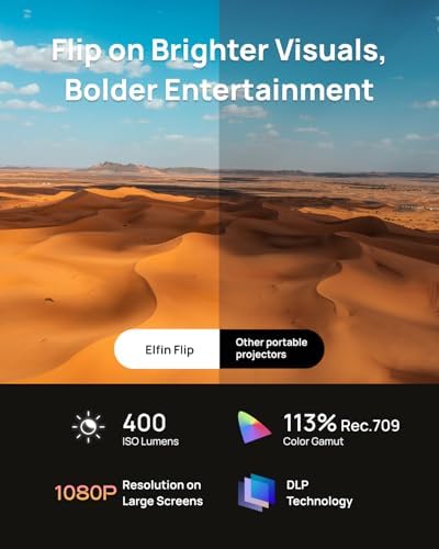 XGIMI Elfin Flip Portable Projector, 1080P Resolution Outdoor Projector, Licensed Netflix, Build-in Adjustable Stand, Lightweight and Compact Design, 400 ISO Lumens, Screen Adaption