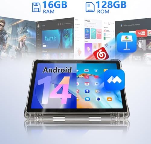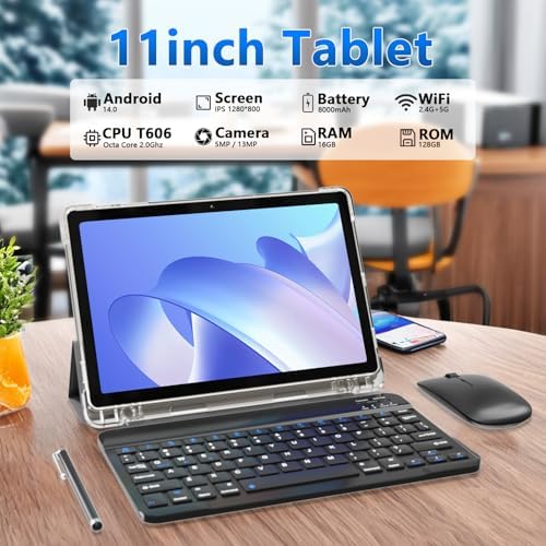 11 inch 2 in 1 Tablet, 16GB + 128GB, Android 14 Tablet, 1TB Expandable, 13MP Camera, Octa-Core Processor 5G WiFi 8000MAH Battery 11'' IPS HD Touchscreen Google Tableta.