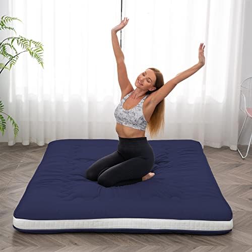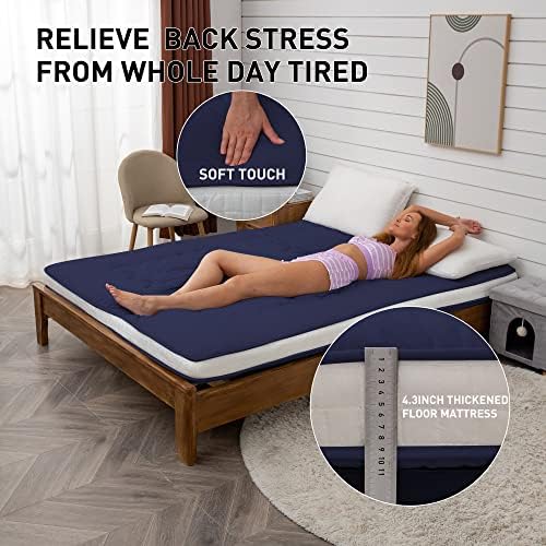 Dr.Futon Japanese Floor Futon Mattress Extra Thick Folding Roll Up Bed Topper Mat for Guest,Lounger and Tavel