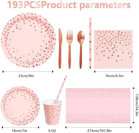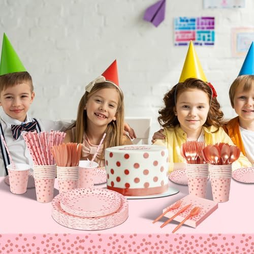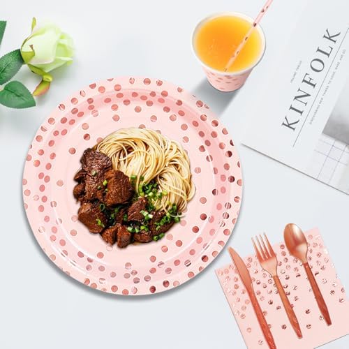 Nkaiso Pink and Rose Gold Party Supplies, 193 Pieces Party Dinnerware Set Includes Party Paper Plates Cups Napkins Straws and Silverware for Birthday Wedding Babyshower Parties Decorations-24 Guests