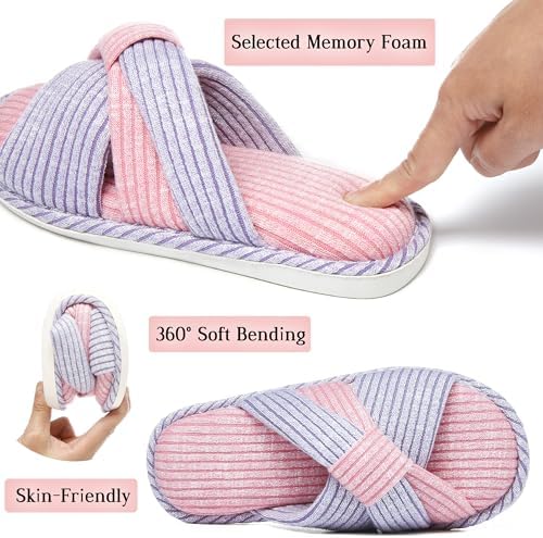 Jerzmy Crossband Slippers for Women, Cute Memory Foam Woman House Slippers Cozy Cushioned Ladies Home Shoes for Bedroom Indoor