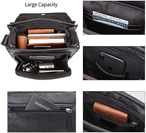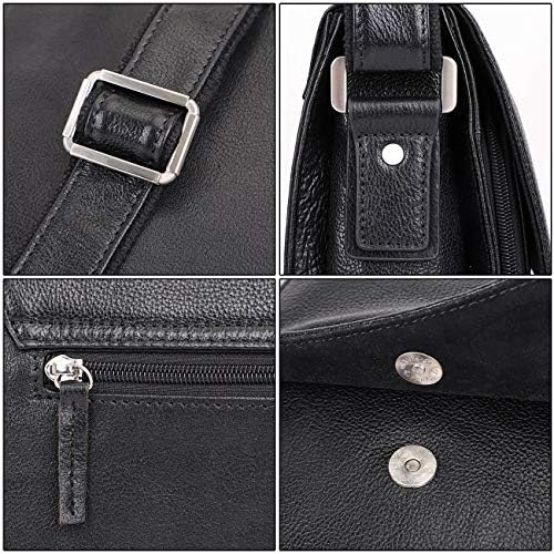 Augus Leather Messenger Shoulder Crossbody Bag for Men Work Business Vintage Magnetic Buckle Big Capacity Adjustable straps