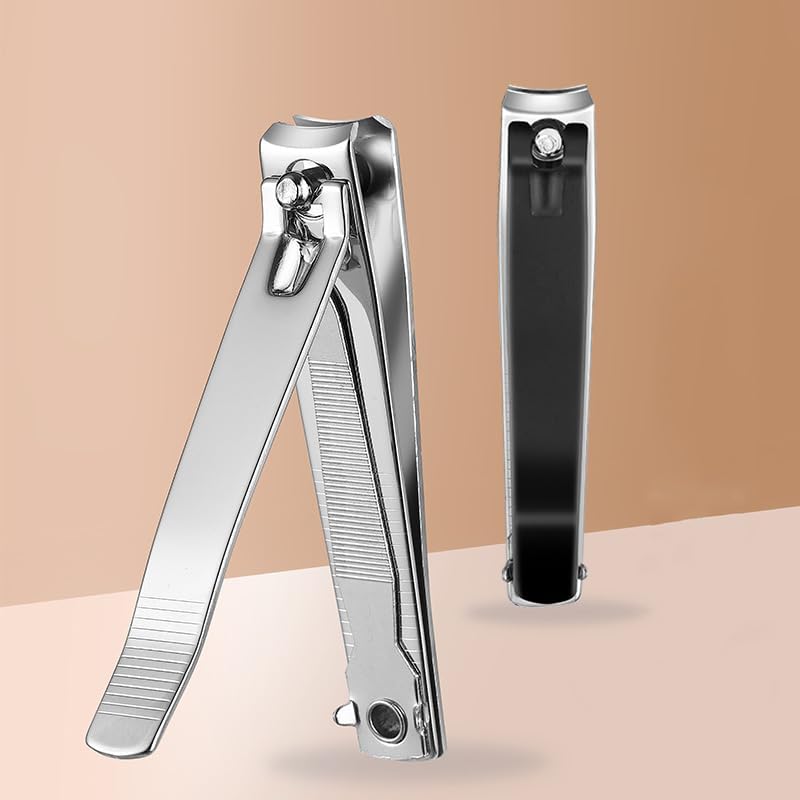 Ucheom Large Nail Clippers 2-Pack, Sharp Stainless Steel Fingernail & Toenail Trimmers with Nail File, Manicure Kit Fingernail Tools for Men & Women, Black and Silver Color