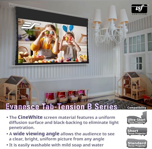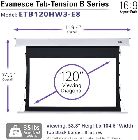 Elite Screens Evanesce Tab-Tension B, 120-inch 16:9, 4K \/ 8K HD, Recessed in-Ceiling Electric Tab Tensioned Projector Screen, Matte White Projection Screen Surface Programmed Remote Kit, ETB120HW3-E8