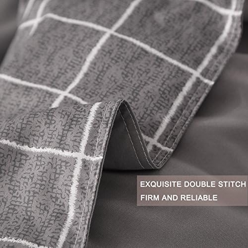 Nanko Queen Duvet Cover Set Gray, 3 Pieces 1200 TC Luxury Microfiber Down Comforter Quilt Bedding Cover with Zipper Closure, Ties - Organic Modern Style for Men and Women, Plaid