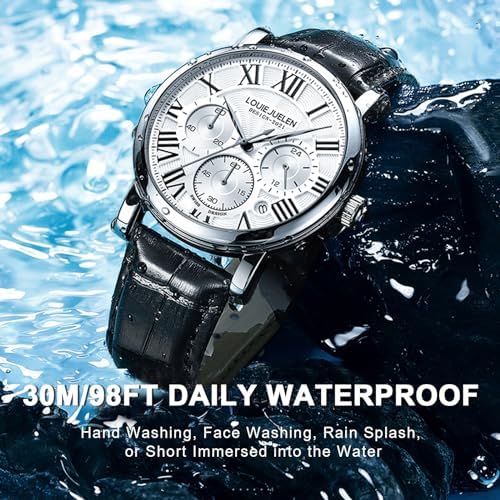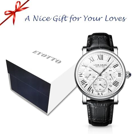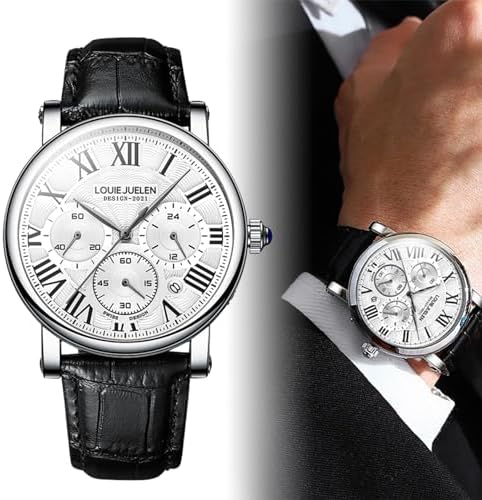 eYotto Men's Stylish Business Watch, Multifunction Quartz Movement Chronograph Roman Numerals Analog Calendar Date Waterproof Leather Band Wristwatch, Formal Casual Dress Gift Watch for Men