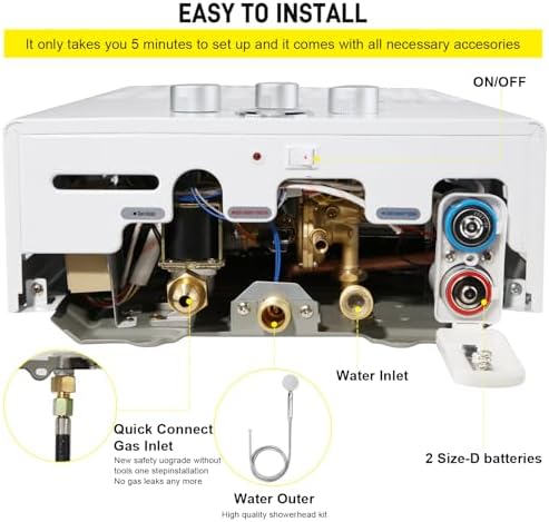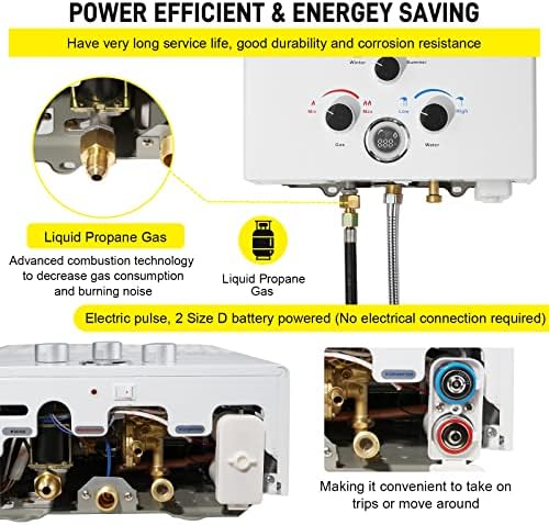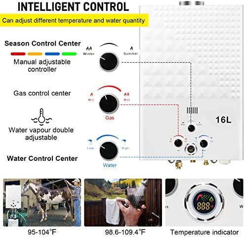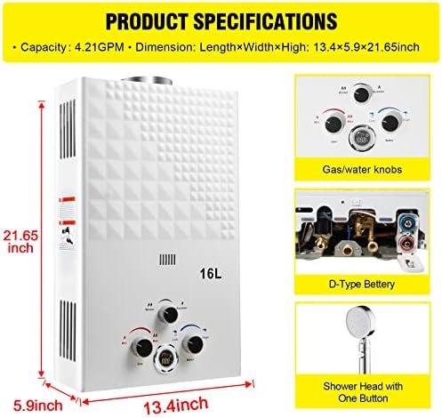 Tankless Water Heater Propane 4.21GPM 16L Outdoor Portable GasHot Water Heater Instant Propane Water Heater with Digital Display Multi-Protection for Camping Trips Boat Cabins