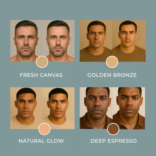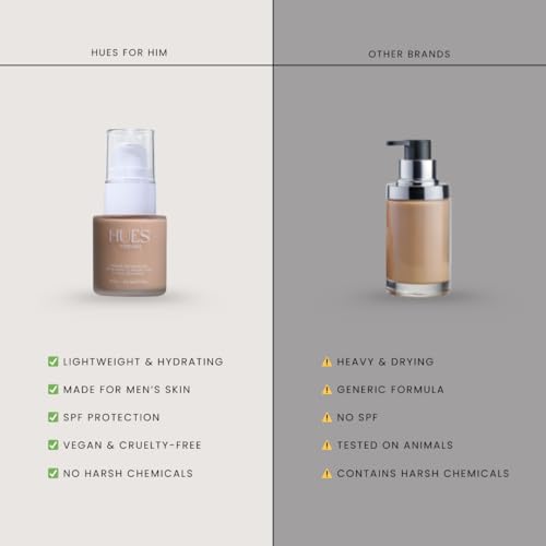 Hues For Him Invisible Foundation for Men \u2013 Medium-Coverage, Lightweight & Hydrating Natural Look Makeup Oil Control & Sweat-Resistant 4 Shades Fresh Canvas