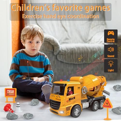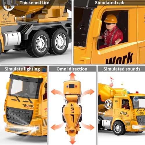 MQDMINI Cement Mixer Toy Truck - Children's Remote Control Truck, Toy Cement Mixer Rechargable Hydraulic Car for 6 7 8 9 Year Old Boys Girls, Educational Toys Birthday Gifts for Kids