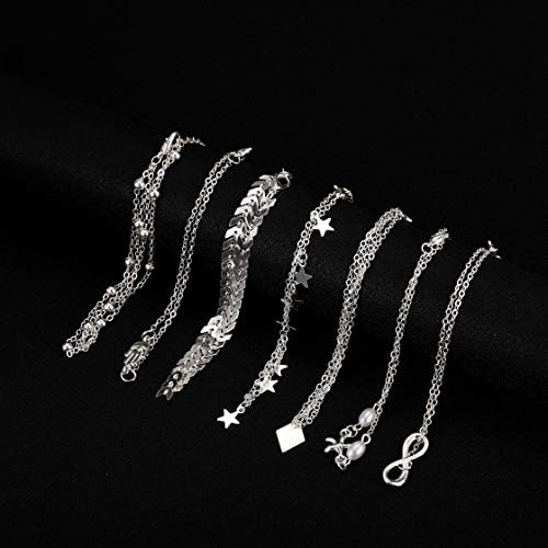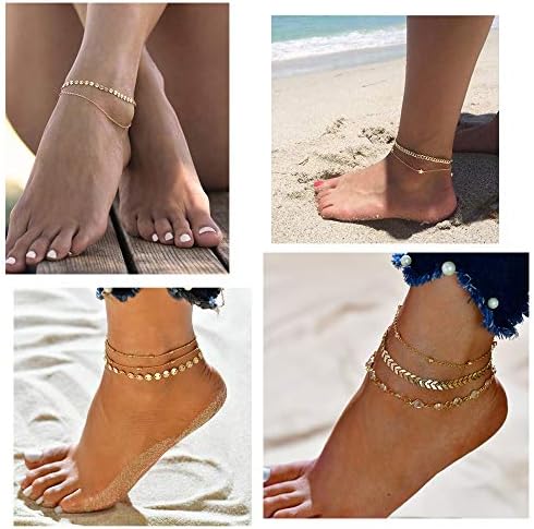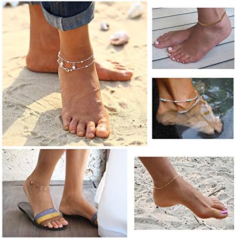 Softones 16 piece women's ankle bracelet with two styles of gold and silver chains, beach anklet bracelet, jewelry anklet set, adjustable size