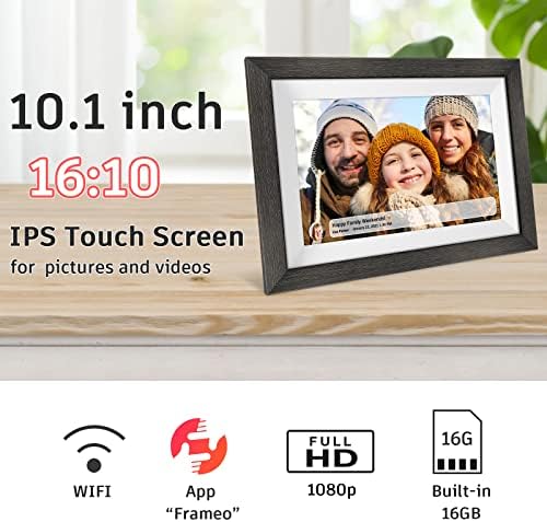 Frameo 10.1 inch Digital Picture Frame WiFi Smart Digital Photo Frame Wood IPS HD 1280 * 800 1080P Touch Screen Auto-Rotate Easy Setup to use Free Share Photos and Videos Gift for mon Father Women