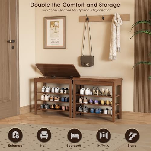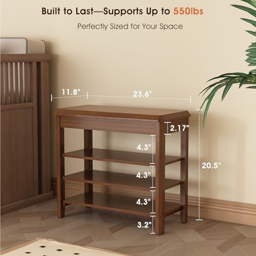 IUNVR Shoe Rack Bench Seat Rubberwood 3-Tier Wooden Storage Bench 550lbs Compact Mid-Century Modern Design for Entryway, Hallway, Closet, Front Door Entrance, Foyer