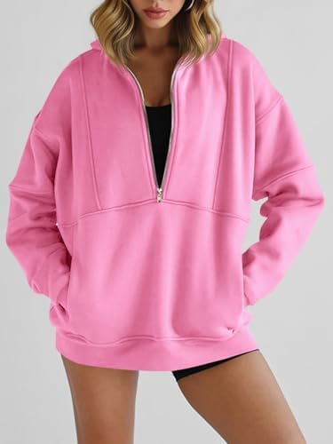 Women's Half Zip Sweatshirts Fleece Stand Collar Long Sleeve Thumb Hole Oversized Pullovers with Pockets