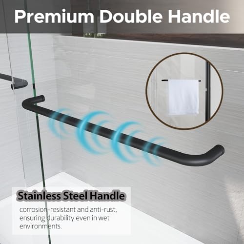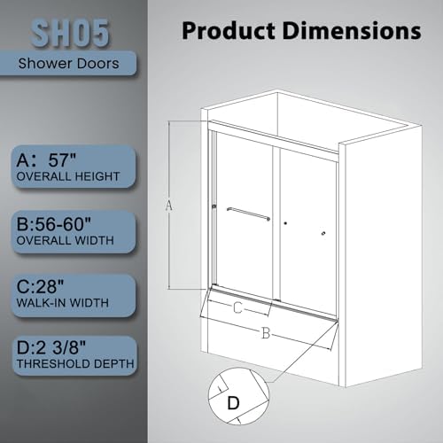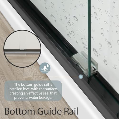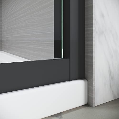 YELNA Black Sliding Bathtub Shower Glass Door 56-60 in. W x 57 in. H, Adjustable Semi-Frameless Tub Shower Door, Certified Thick Clear Clear Tempered Glass