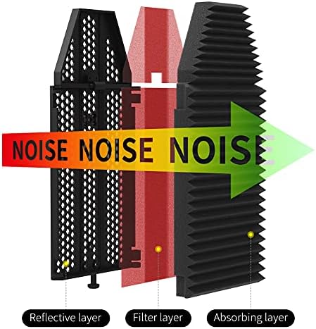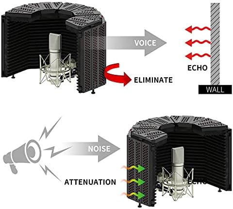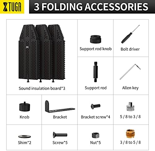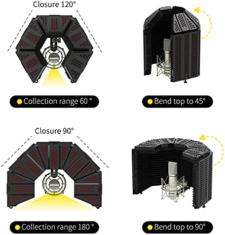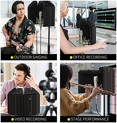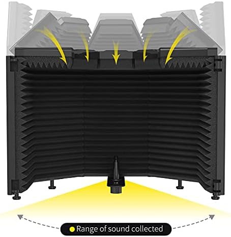 XTUGA Recording Microphone Isolation Shield, High Density Absorbent Foam 3 Panels to Filter Vocal,Top Enclosed Foldable Soundproof Cover for Condenser Studio Equipment MIS01