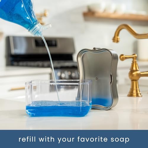 S\u0026amp; T INC. Kitchen Sink Dishsoap Dispenser and Sponge Rack, with Sponge, 13 oz (approximately 368.5 g), Silver Metal