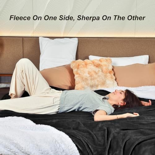 KAWAHOME Sherpa sheep blanket throw size super soft, super warm, thick winter 500GSM sofa bed blanket, 50 inches X 60 inches (dark gray)
