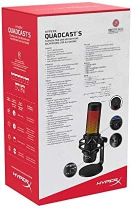 HyperX QuadCast S \u2013 RGB USB Condenser Microphone for PC, PS4, PS5 and Mac, Anti-Vibration Shock Mount, 4 Polar Patterns, Pop Filter, Gain Control, Gaming, Streaming, Podcasts, Twitch, YouTube, Di