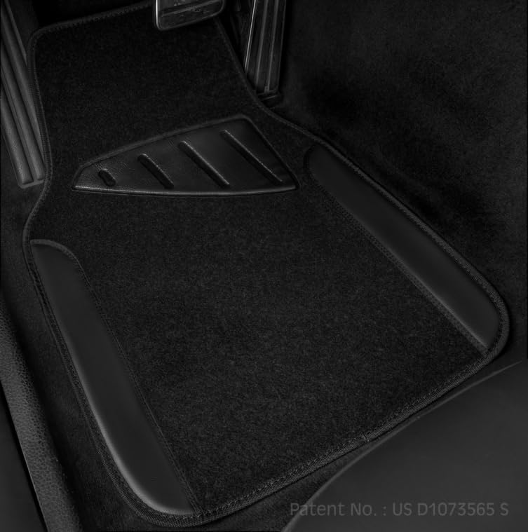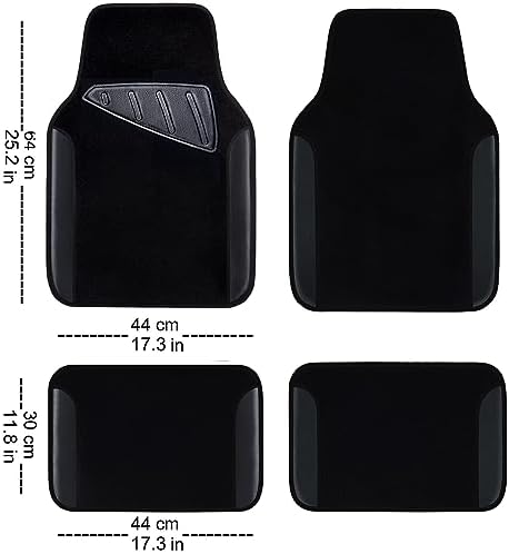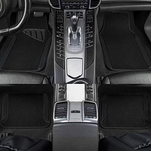 CAR PASS Waterproof Universal Fit Car Floor Mats, Faux Leather Car Carpet Mats, Black Car Mats with Anti-Slip Nibbs Backing & Driver Heel Pad Fit for SUV,Vans,sedans, Trucks,Set of 4pcs(All Black)