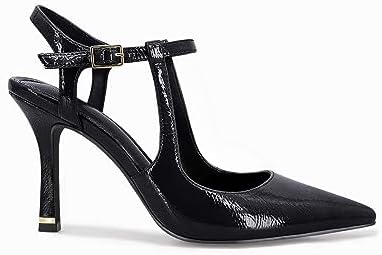 Coutgo Womens High Heels Pointed Toe Ankle Strap Pumps Patent Leather Sexy Stiletto Office Wedding Dress Shoes