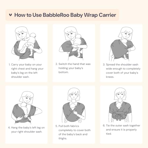 BabbleRoo Baby Wraps Carrier - Baby Essentials Baby Sling Carrier, Secure & Comfortable, Breathable, Easy-to-use, Adjustable XS to XL, Promoting Parent-Child Bonding, Gray