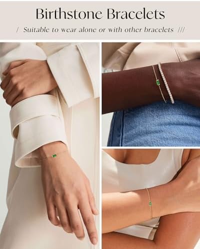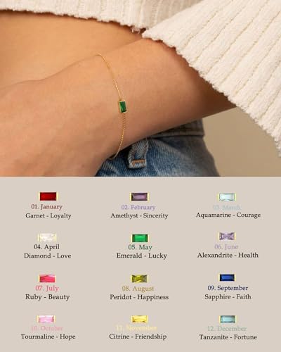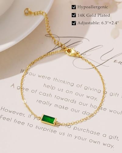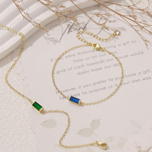 FUNEIA Birthstone Gold Bracelets for Women Non Tarnish Trendy Dainty 14K Gold Plated Bracelet Stack Stackable Blue Green May Emerald Friendship Bracelets Jewelry Gifts for Mom Best Friend