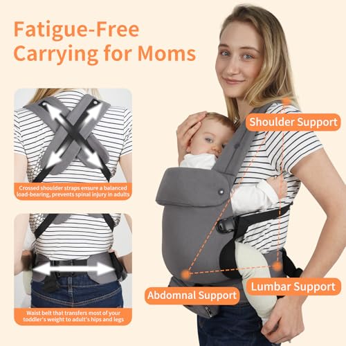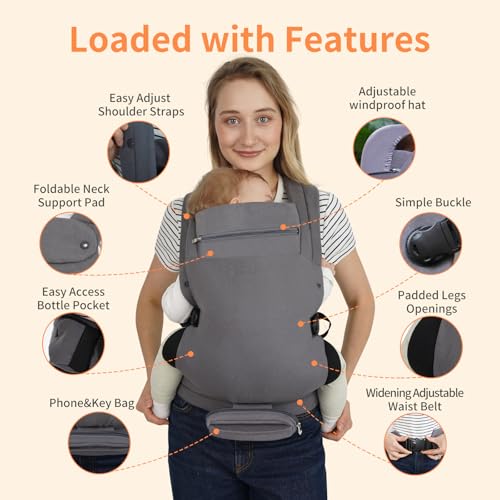 Baby Carrier, Baby Carrier Newborn to Toddler, Ergonomic, Cozy and Lightweight Infant Carrier for 7-44lbs, Effortless to Put On, Ideal for Hands-Free Parenting, Multi Use for Infant to Toddler