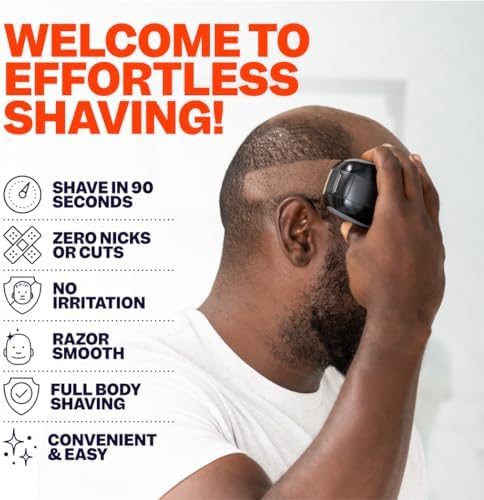 Freebird FlexSeries Electric Head & Body Hair Shaver - Mens Cordless Rechargeable Wet\/Dry Skull Bald Head Back & Groin Waterproof Razor with Rotary Blades, Clippers, Nose Trimmer, Brush, Mass