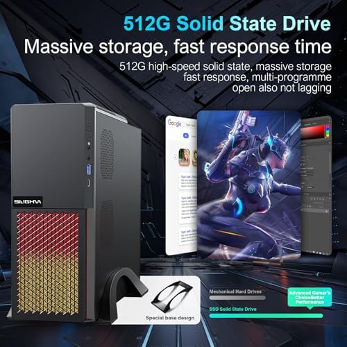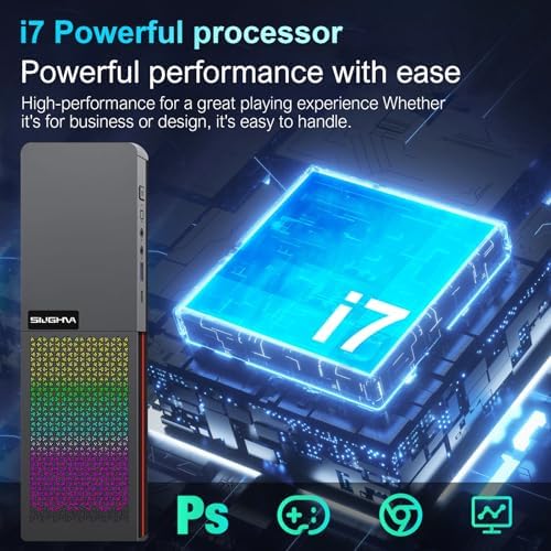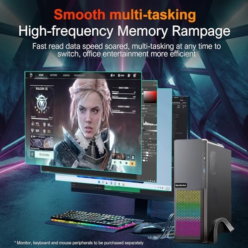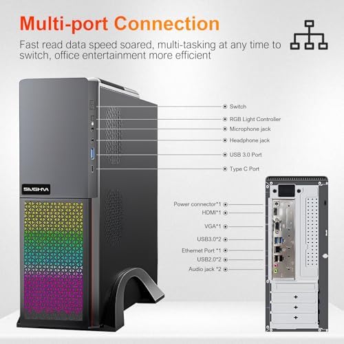 SIUGHVA Tower Business Desktop Computer, RGB Lights PC, Wireless WiFi, Display Port, HDMI, VGA, USB 3.0, Bluetooth, Wired Keyboard & Mouse, for Business and Gaming (N100-16-512)