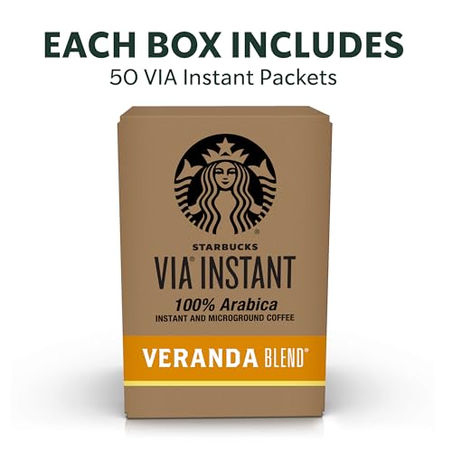 Starbucks VIA Instant Coffee, Light Roast Coffee, Veranda Blend, 100% Arabica, Single-Serve, 1 Box (50 Packets)